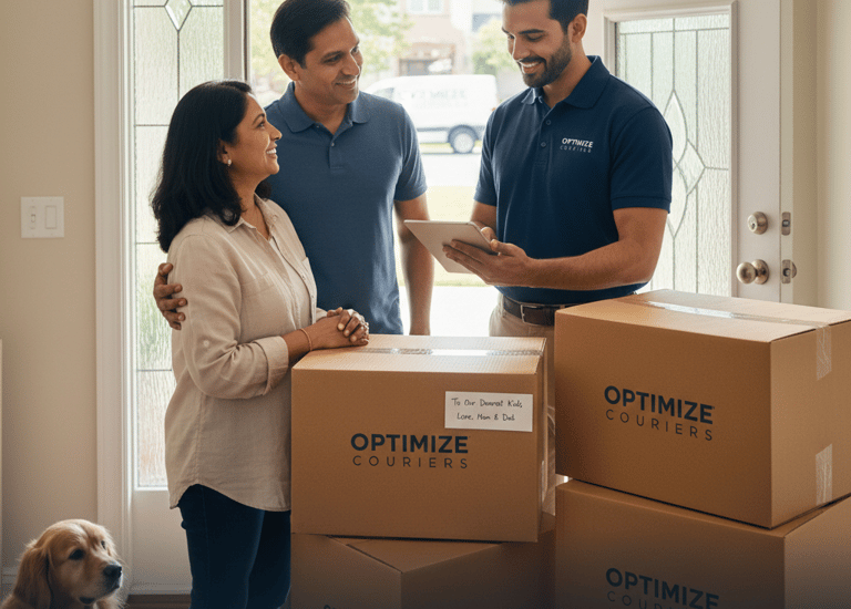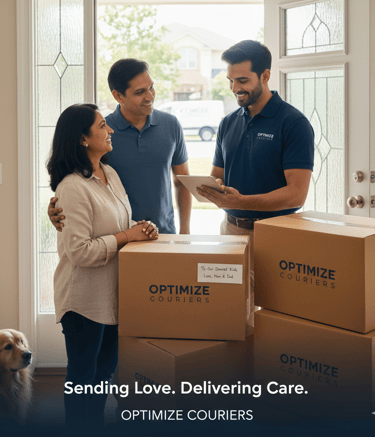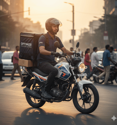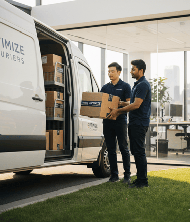 Snapshots of Optimize Couriers in action, delivering with care.